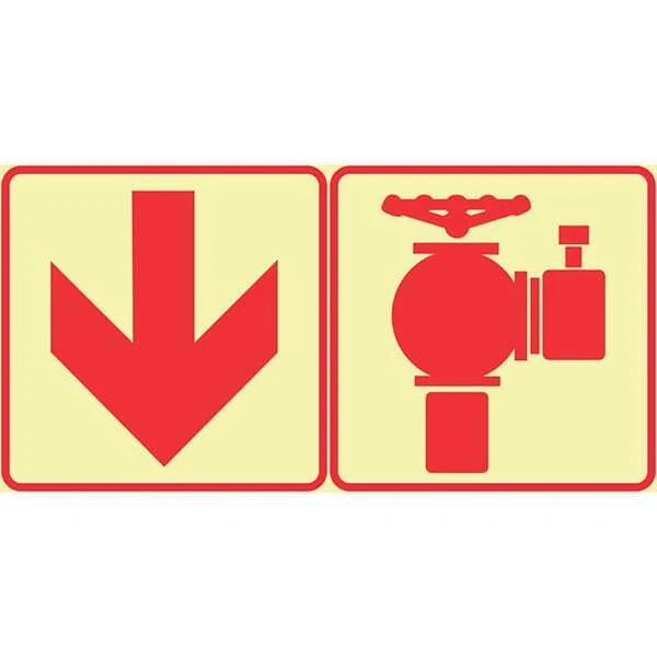 F15 – SABS Red Arrow Down And Fire Hydrant. Photoluminescent (Glow In The Dark) Sign. Signs are manufactured to order, delivery in 7-10 business days.