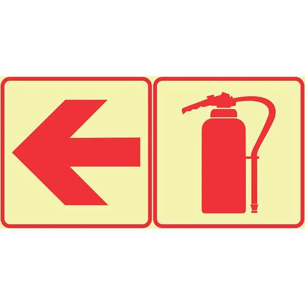 F16 – SABS Red Arrow Left And Fire Extinguisher. Photoluminescent (Glow In The Dark) Sign. Signs are manufactured to order, delivery in 7-10 business days.