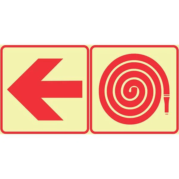 F17 – SABS Red Arrow Left And Fire Hose Reel. Photoluminescent (Glow In The Dark) Sign. Signs are manufactured to order, delivery in 7-10 business days.