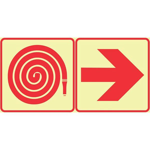 F20 – SABS Fire Hose Reel And Red Arrow Right. Photoluminescent (Glow In The Dark) Sign. Signs are manufactured to order, delivery in 7-10 business days.