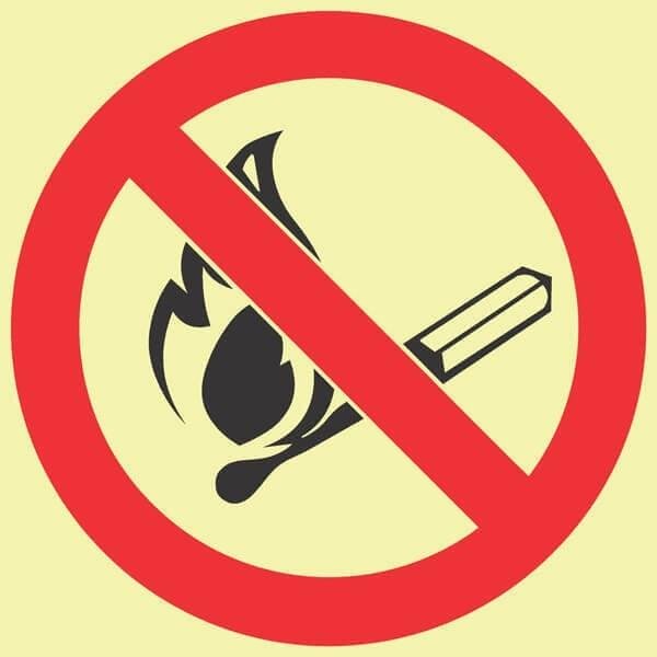 F26 – SABS No Fire Or Open Flames. Photoluminescent (Glow In The Dark) Sign. Signs are manufactured to order, delivery in 7-10 business days.