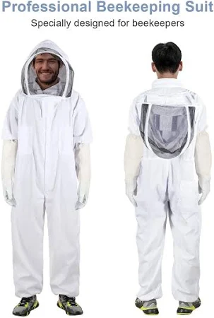 Beekeepers One Piece Full Body Suit, With Separate Jacket With A Zip On Veil And Gloves (S – L)