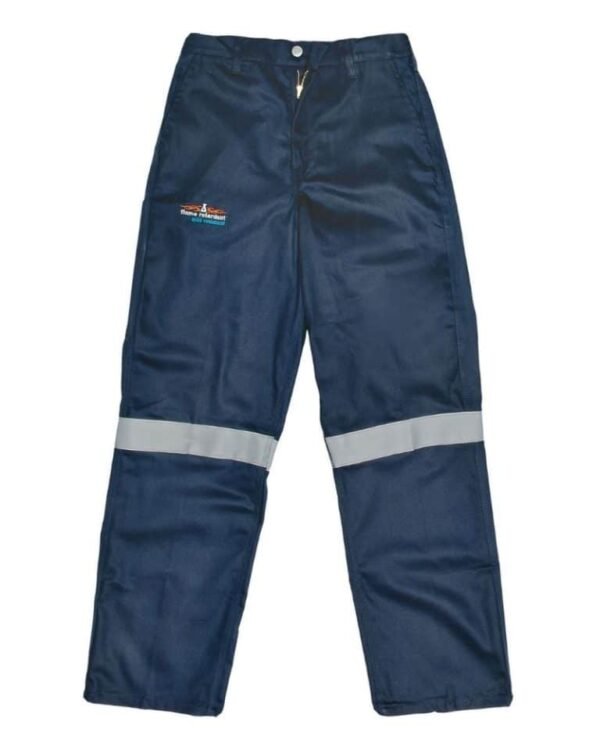 Javlin Flame Retardant & Acid Resistant Conti Trousers SABS Approved Sasol Navy Heavy Duty + Silver Ref. Tape