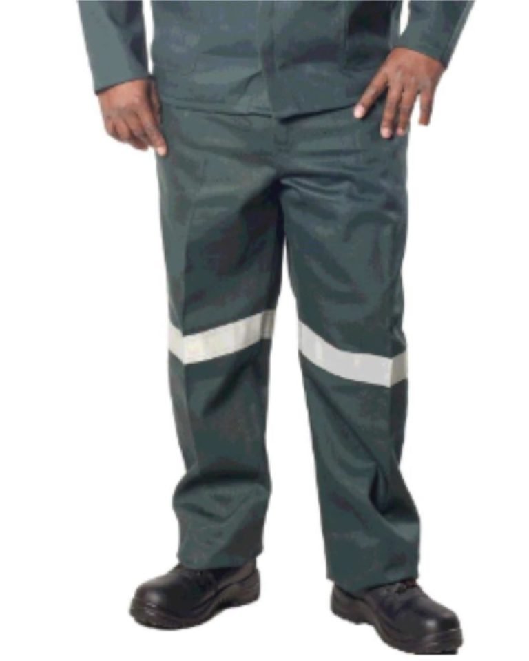 Eskom Spec Bottle Green D59 Trouser Acid with PPE compliance. Strong, protective, and professional industrial workwear – order now.