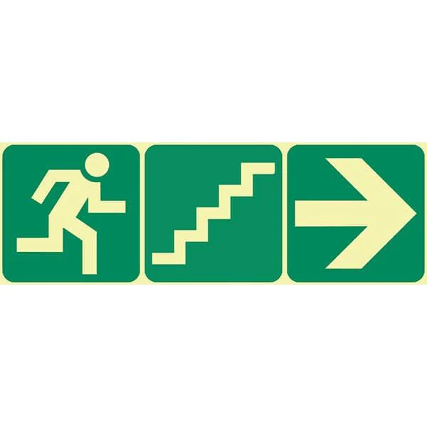 E18 – SABS Running Man, Stairs Up And Arrow Right. Photoluminescent (Glow In The Dark) Sign. Signs are manufactured to order, delivery in 7-10 business days.