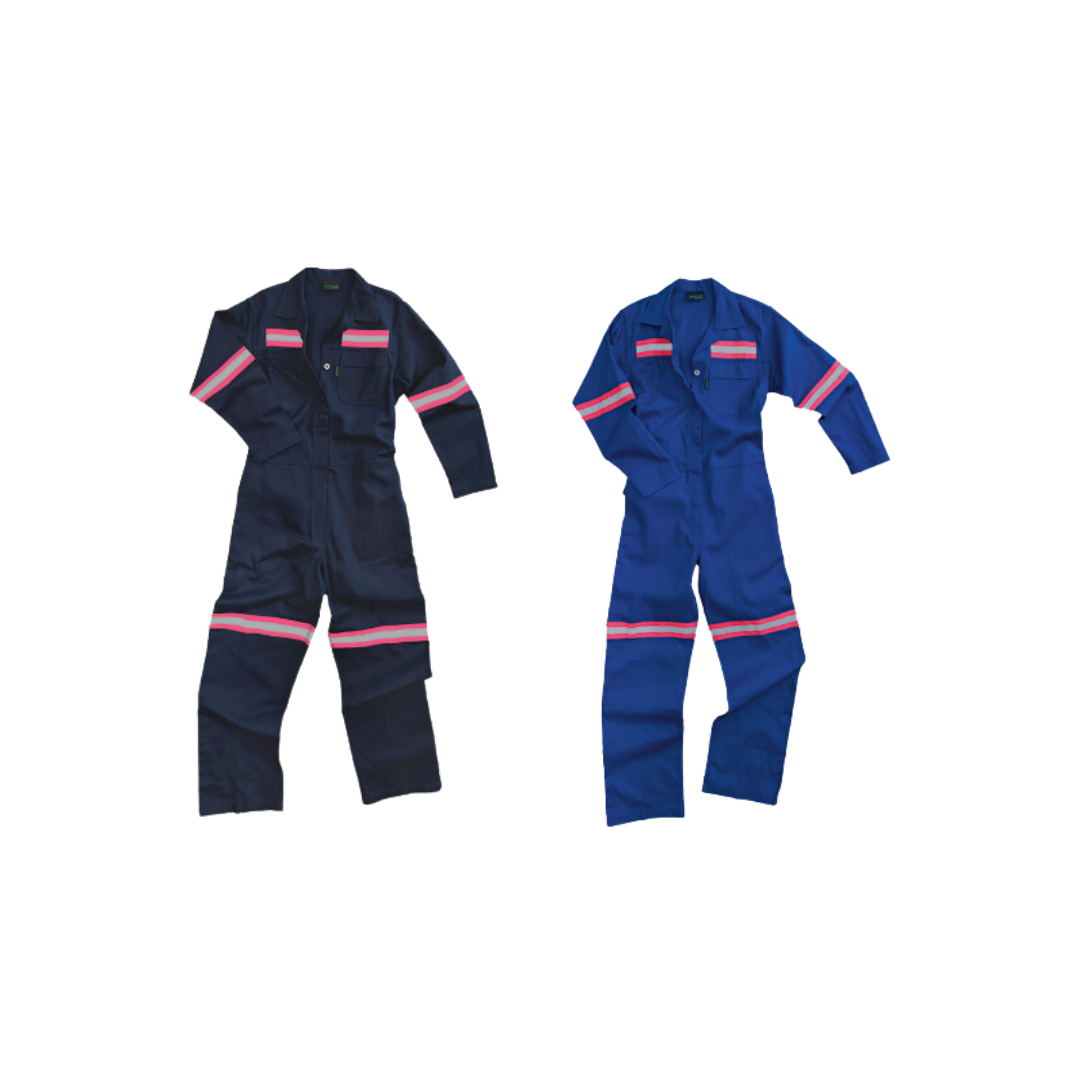 - Order today to secure reliable protection with durable women’s boiler suits featuring pink reflective tape.