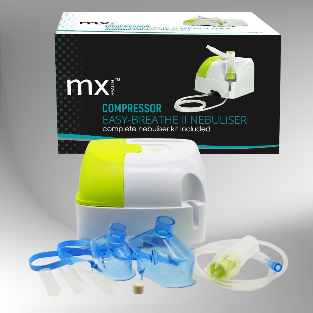 The mxâ„¢ Easy-Breathe II nebuliser is designed to assist in the treatments of; asthma, chronic bronchitis, allergies and other respiratory disorders. The piston compressor converts prescribed medication into an aerosol of micr scopic droplets for inhalation via mask or mouth-piece. It is suitable for all ages