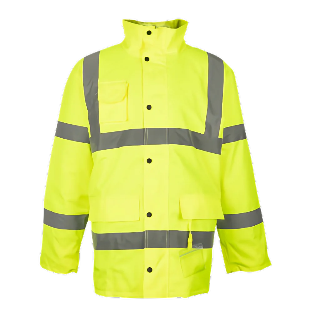 Stay dry and warm with the Class 3 Raincoat/Parka Jacket. Waterproof, PU coated, with a detachable quilted inner. Perfect for high-visibility and safety. Shop now!